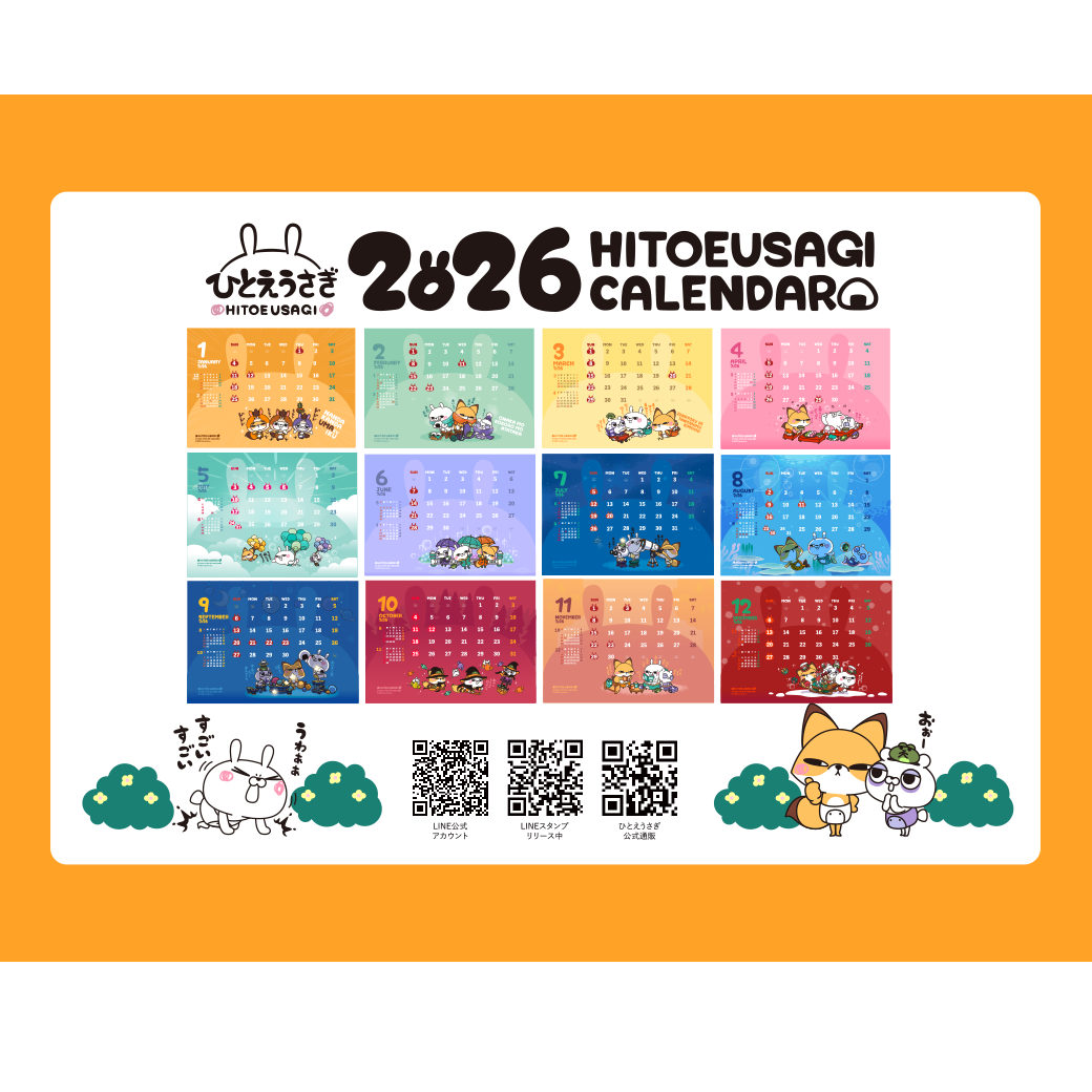 【カレンダー】ひとえうさぎ 2026年卓上カレンダー