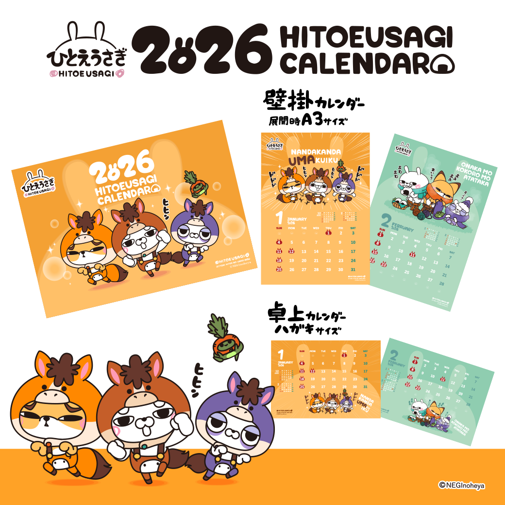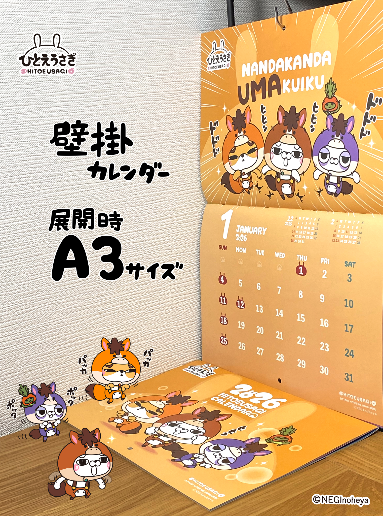 【カレンダー】ひとえうさぎ 2026年壁掛けカレンダー